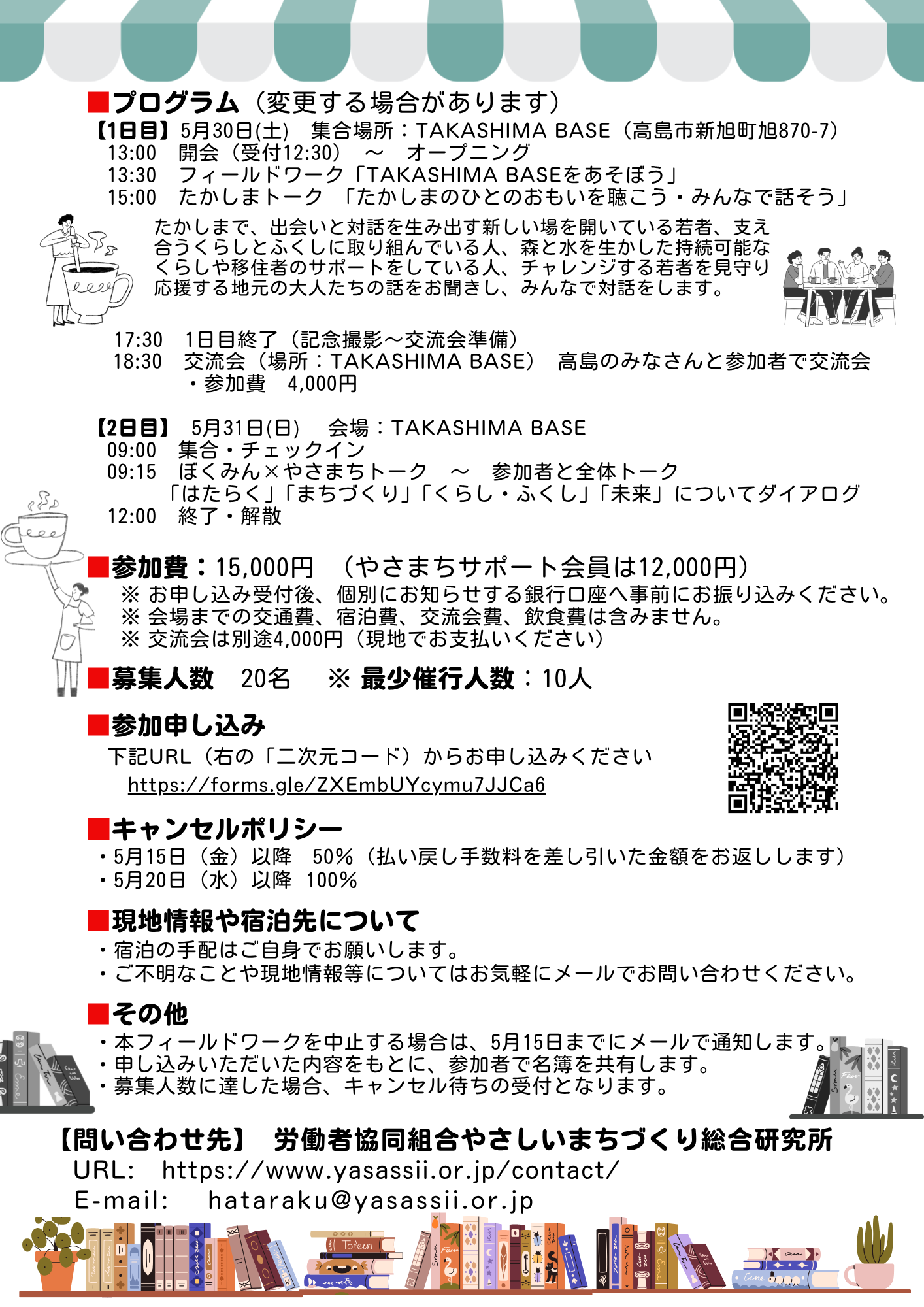 5/30-31 たかしまフィールドワーク(やさまち総研 with ぼくみん)開催のお知らせ