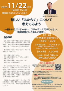 第3回やさまちオンラインセミナー 「新しい「はたらく」について考えてみよう」〜雇われるだけじゃない、フリーランスだけじゃない、協同労働という新しい選択〜 これまでのやり⽅や常識に合わせるのではなく、⾃分たちの望む未来の働 […]